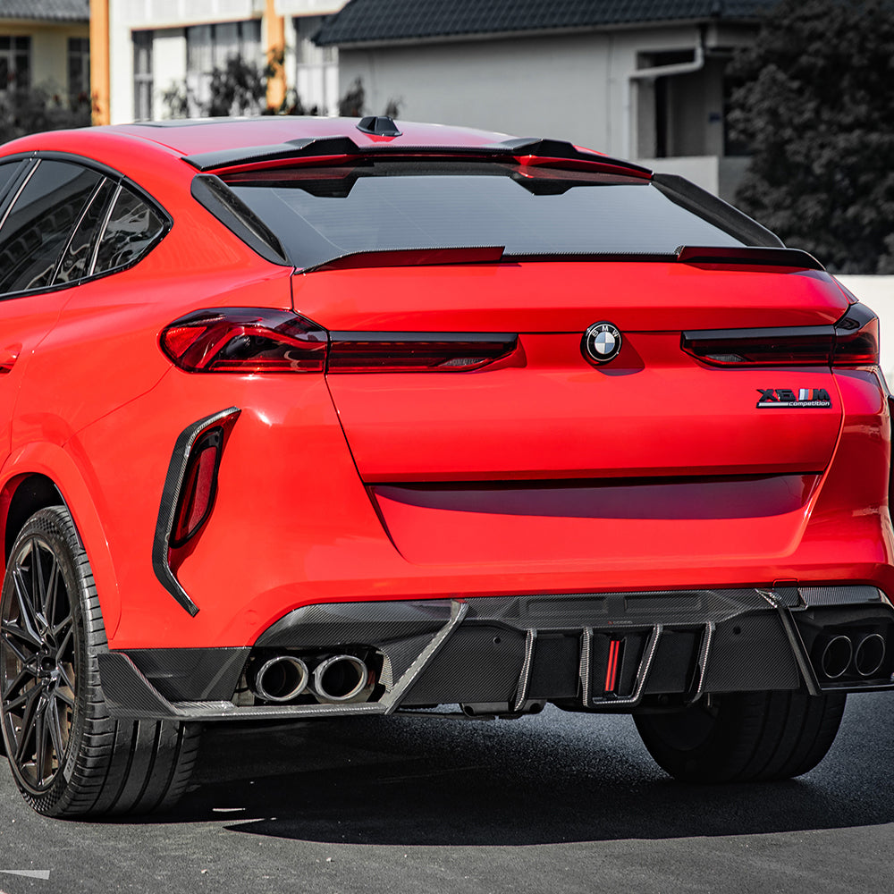 TNF+ SOOQOO Heckdiffusor mit LED aus Prepreg Carbon passend für den BMW X6 (F96 und F96 Facelift)