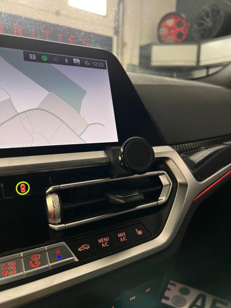 Einfach den Halter von oben zwischen die Lüftung schieben!