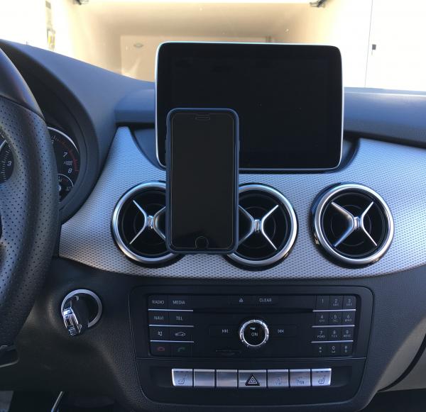 Einfach den Halter von oben zwischen die Lüftung schieben!